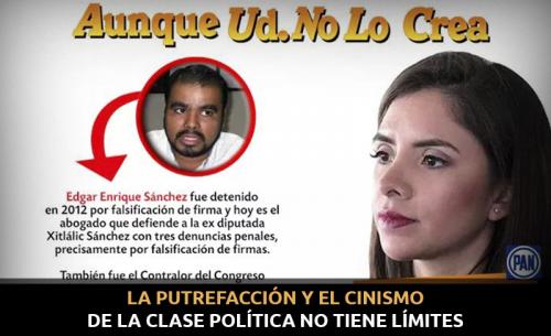 ¡Aunque usted no lo crea!, hoy es el abogado defensor de la ex diputada local panista de San Luis Potosí Xitlálic Sánchez Servín, que enfrenta tres denuncias penales por diversos delitos entre los que destaca la falsificación de firmas de gente de escasos recursos para presuntamente cobrar y quedarse con el dinero destinado para ayudas sociales.