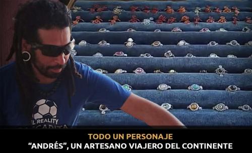 Andrés es un artesano originario de Colombia, quien a través de su arte ha pulido la técnica para elaborar anillos y aretes de cuarzo, esto le ha permitido viajar a lo largo de casi todo el continente americano, vendiendo sus creaciones a lo largo de varios años; algunas veces pagando el transporte, otras veces ha recorrido lugares de ‘raid’, pero así ha conocido diferentes lugares, desde México hasta la Patagonia.