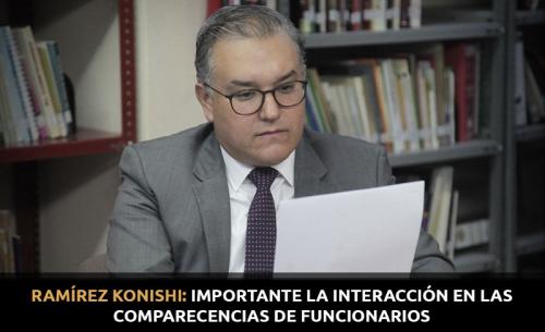 En cuanto al mecanismo de la rendición de cuentas de los funcionarios de Gobierno del Estado ante la Legislatura, Ramírez Konishi explicó "se cambió el formato pasado de las comparecencias, porque antes llegaba el funcionario, sacaba una pantalla, su presentación, exponía y reducía mucho el tiempo de interacción, ahora se le manda con anticipación a los diputados esa presentación y nosotros la analizamos, y dedicamos más tiempo a las preguntas y respuestas, a la interacción con el compareciente, y eso hace que sean más dinámicas y sí nos llevemos una respuesta para la gente que nos lo pide".