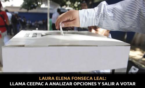 Finalmente Laura Elena Fonseca manifestó "con todo respeto a los ciudadanos, les quiero pedir que salgan a votar, que participen, que analicen sus opciones, habrá suficientes opciones en los municipios, que es la elección más sentida, como en las diputaciones y para gobernador, que reflexionen su voto, el voto es libre y secreto, y que de ninguna manera nadie puede coaccionar o comprar los votos, porque eso se constituye en un delito electoral, y a los compañeros actores políticos participantes del proceso, pues que respeten lo que hemos venido diciendo, que es primero que nada que se lleven a cabo en un ambiente de salud y de paz sus campañas".