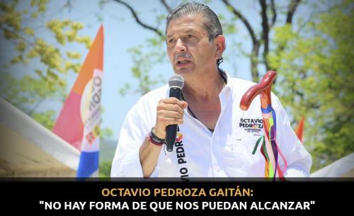 En lo que se refiere al tema de las encuestas que lo ubican como puntero en la carrera por la Gubernatura, Pedroza Gaitán explicó "en las encuestas llega tal cantidad de información, que luego la gente confunde, hay quien utiliza las encuestas para mal informar o crear una percepción muy lejana a la realidad, para nosotros las que importan son las que utilizamos para consumo interno, hemos difundido algunas importantes como la del diario español El País, que en un resumen de encuestas nos ubican arriba de los 8 puntos porcentuales en esta competencia en la recta final; nosotros tenemos información muy objetiva, muy clara, en donde no hay forma que nos puedan alcanzar en estas semanas".