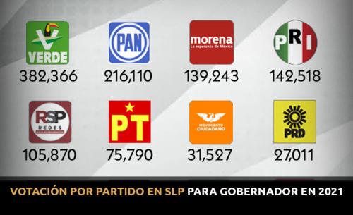 Esta es la votación obtenida de manera individual por cada partido político tras el cómputo oficial final para la elección de gobernador de San Luis Potosí.