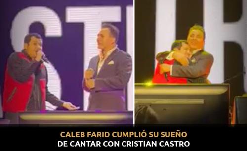 Durante la Feria Nacional Potosina, el cantante vallense Caleb Farid vio cumplido su sueño no sólo de conocer y saludar al cantautor internacional mexicano Cristian Castro, sino de incluso cantar con él, una experiencia que lo marcará por el resto de su vida, de acuerdo al testimonio que ofreció en entrevista sobre este reciente encuentro.