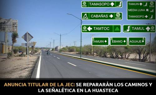 En el caso específico de la Huasteca, que es una zona turística, Francisco Reyes informó "está contemplado el eje Santa Anita-Tanchachín con una rehabilitación y con un saneamiento a todas las cunetas, pintura y señalética, y de Tanchachín a La Morena es un poquito más arriba son seis kilómetros, una rehabilitación integral completa, una reestructuración completa del camino para sostener un acceso a las Cascadas de Tamul, muy bonito y con muy buena señalética para una buena imagen turística".