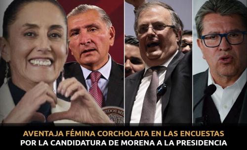 Aventaja fémina corcholata en las encuestas por la candidatura de Morena a la presidencia
