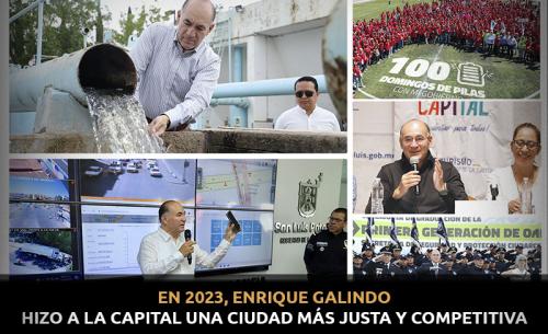 En el Segundo Informe de Gobierno de Enrique Galindo Ceballos, el Presidente Municipal de la Capital destacó los importantes logros en materia de seguridad conseguidos durante el segundo año de la administración, el crecimiento en la competitividad de la ciudad que ha representado el programa Vialidades Potosinas, además de que pudo dar cuenta de la implementación de estrategias para abordar la crisis hídrica que afecta a la ciudad, el principal reto que ha vivido la ciudad durante este 2023.