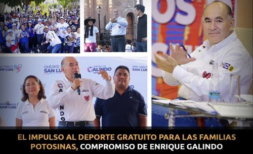 "Con tres años más de gobierno, se quedará en San Luis Potosí la política pública de impulsar el deporte gratuito, accesible y diverso" expresó el candidato de la coalición Fuerza y Corazón por San Luis a la alcaldía capitalina, Enrique Galindo Ceballos, quien recordó que estas actividades forman parte de una estrategia de seguridad pública y también de impulso al turismo en la ciudad.