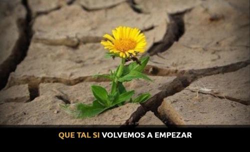 Dios un día vio una humanidad perdida y extraviada, allí estábamos tu y yo como parte de esa generación rebelde, como ovejas extraviadas, y Él decidió venir en persona a rescatarnos, pagando un alto precio: la sangre de su humanidad rota en la cruz, para decirnos: "volvamos a empezar". Nosotros, tan humanos como somos, nos desanimamos, dejamos de creer en los demás, decimos: "se acabó...no más. Tú no tienes remedio, nunca vas a cambiar". Pero Dios te dice: "volvamos a empezar, conmigo siempre hay una nueva oportunidad, un mañana, una puerta abierta, un camino nuevo.