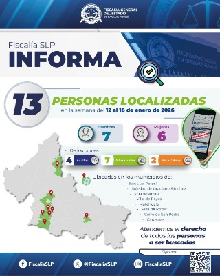 La Fiscalía General del Estado de San Luis Potosí (FGESLP) informó que, a través de la Coordinación Estatal de Alerta Amber y la Unidad de Person...