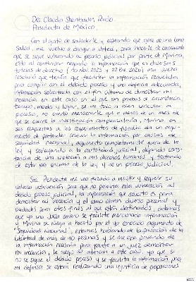 El despacho Mendienta & Asociados informa que su representado, el Vicealmirante del Estado Mayor Manuel Roberto Farías Laguna, dirigió una carta for...