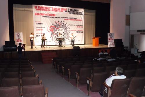 El ya de por si descuidado y polvoriento teatro, fue la sede de tan magno evento, que lamentablemente no fue reconocido, ni conocido, ni aún publicado por los medios de comunicación locales, excepto un par de ellos, que lograron la intentona de rescatar el tema del concierto, la muestra musical de los grupos apoyados por la propia CONACULTA, para "recordar" el día internacional de los pueblos indígenas, presenciado por poco más de una treintena de personas, incluyendo a integrantes de los grupos, miembros del staff y funcionarios.