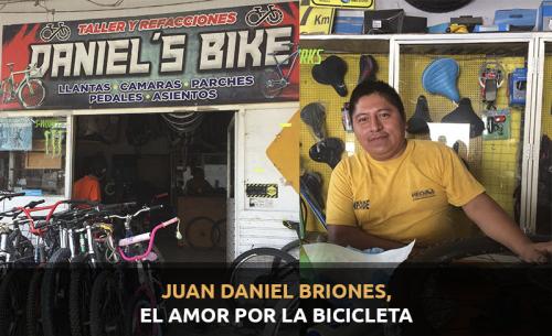 Juan Daniel Briones lleva alrededor de 20 años dedicado a la reparación de bicicletas, negocio que puede parecer muy poco rentable, pero él lo ha sabido llevar a flote durante todo este tiempo.