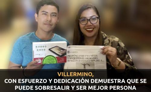 Villermino Olvera Álvarez, recibió un regalo consistente en una Tableta Electrónica, por un ensayo que redactó, basado en la lectura del libro "Los tres Poderes de la Superación Personal” del autor Dr. Fernando Daniel Peiró, él es alumno del 6to semestre en el plantel de Educación Media Superior-Emsad 19, del Sistema Cobach, en el Ejido Coyoles y la actividad estuvo a cargo de la excelente maestra, Oyuki Villeda Wong.