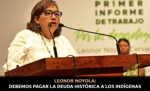 En el marco de la presentación de su primer informe de trabajo legislativo, la Senadora Leonor Noyola Cervantes dijo que su principal actividad está centrada en la Presidencia de la Comisión de Asuntos Indígenas, pero sobre todo en dejar atrás el discurso de que se tiene una deuda histórica con los pueblos originarios y en realidad empezarla a pagar, con hechos tangibles en su beneficio.