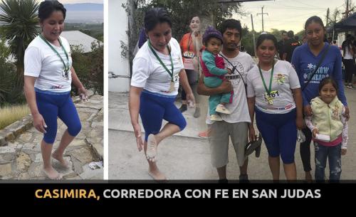 Casimira Chávez Bautista es originaria del municipio de Aquismón, esposa y madre de cuatro hijos, dedicada al comercio toda su vida, y es uno de esos muchos ejemplos de fe que hay en la vida, pero es en especial su devoción a San Judas Tadeo que la llevó a correr la justa en honor al santo descalza y sin ningún tipo de preparación física previa, sólo impulsada por la fe.