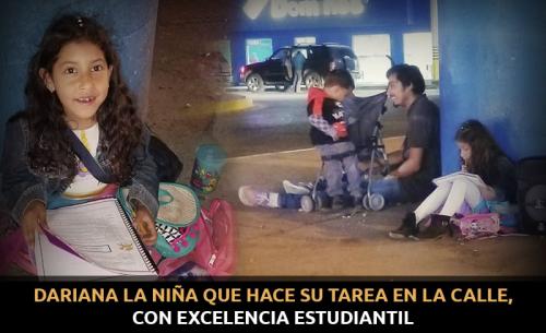 Llamó la atención que Dariana Romo Yáñez con todas las ganas de salir adelante a su corta edad estuviese elaborando su tarea en plena vía pública, platicando con su mamá, la señora Adriana Romo Yáñez, nos comentó que Dariana es una alumna con excelencia estudiantil en su escuela, a pesar de sufrir asma, enfermedad que han sobrellevado a lo largo de los 7 años de vida de Dariana, pues su mamá ha perdido varios empleos debido a esta situación ya que ha tenido que salir de emergencia y muchas ocasiones sus patrones ya no lo siguieron permitiendo.