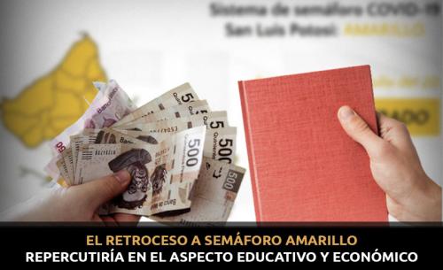 Mientras tanto, a partir de este anuncio, ya hay malas noticias para el sector comercio. El regreso de San Luis Potosí al semáforo epidemiológico en amarillo es un "retroceso" y un desánimo del sector comercio en la recuperación económica, lamentó Juan Branca Gutiérrez, presidente de la Cámara Nacional de Comercio y Servicios de Turismo (Canaco-Servytur).