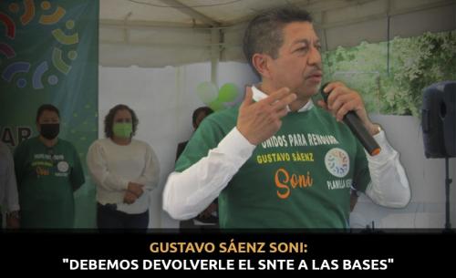 El candidato a la Secretaría General de la Sección 26 del Sindicato Nacional de Trabajadores de la Educación, Gustavo Sáenz Soni, dio a conocer que su propuesta es "la reivindicación de todo el magisterio potosino, hoy en día hemos estado totalmente olvidados por los compañeros actua-les, entonces nuestro trabajo va encaminado a eso, a trabajar para la base y con la base".