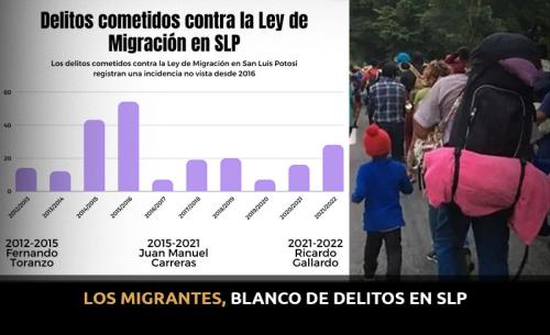 Los delitos cometidos contra la Ley de Migración crecieron un 75% entre el último año del gobierno de Juan Manuel Carreras y el primero de Ricardo Gallardo, al pasar de 16 a 287 carpetas de investigación abiertas.