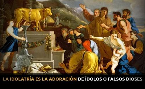 En la Biblia, este término se refiere a la práctica de rendir culto a cualquier cosa que no sea Dios. Hoy quiero compartir tres historias bíblicas de manera breve. La primera es la del becerro de oro que encontramos en Éxodo 32. Moisés subió al monte Sinaí para recibir los Diez Mandamientos de Dios. Durante su ausencia, los israelitas impacientes y desconfiados persuadieron a Aarón para que les hiciera un becerro de oro al cual adorar. Entonces, el Señor le dijo a Moisés: "Anda, baja, porque tu pueblo, el que sacaste de la tierra de Egipto, se ha corrompido". Al regresar, Moisés, enfurecido por la idolatría, destruyó las tablas de la ley y castigó a los responsables.
