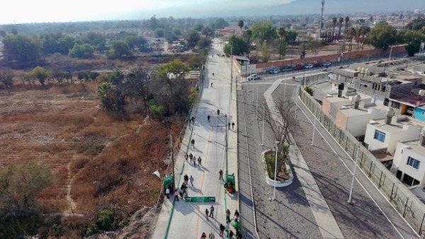 Juan Manuel Navarro Muñiz, Alcalde de Soledad de Graciano Sánchez, realizó este lunes el corte de listón inaugural para la entrega de la obra de pavimentación con concreto hidráulico e instalación de alumbrado tipo led de la avenida Libertad, en el tramo de avenida Valentín Amador a calle Cigüeñas, en el fraccionamiento El Morro, con una inversión de más de 9.5 millones de pesos; importante renovación que beneficia de manera directa e indirecta a más de 26 mil habitantes, para fortalecer la movilidad urbana, la seguridad pública, la calidad de vida y el dinamismo económico local leer Más