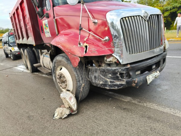 Choque entre torton y camión urbano en El Gavilán deja solo daños materiales