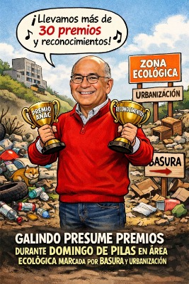 Galindo presume premios durante "Domingo de Pilas" en área ecológica marcada por basura y urbanización