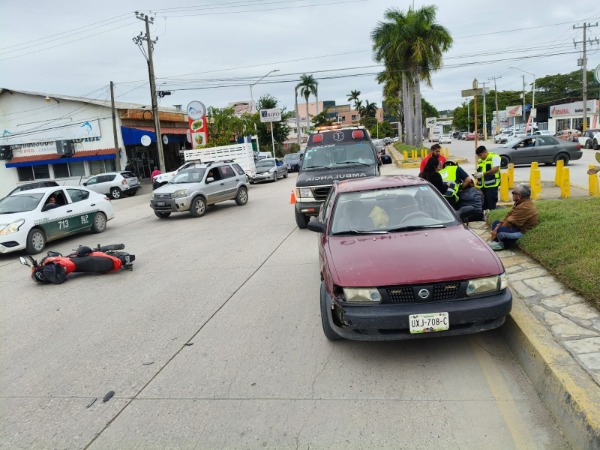 Motocicleta se impacta contra automóvil en cruce del bulevar México-Laredo; dos personas heridas