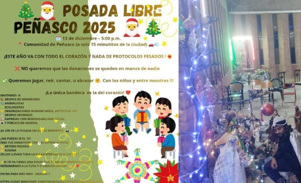 Diana García El líder comunitario Alejandro Loredo Hernández, impulsor del proyecto "Guardianes de la Tierra", reveló que la idea de organizar una Posada Libre nació tras presenciar prácticas injustas en ciertas instituciones. Durante la entrevista explicó que en una ocasión llevaron juguetes a un albergue y "les estaban quitando los juguetes a los niños, les decían que era para venderlos". Esta experiencia los motivó a crear un evento totalmente abierto y sin intermediarios leer Más