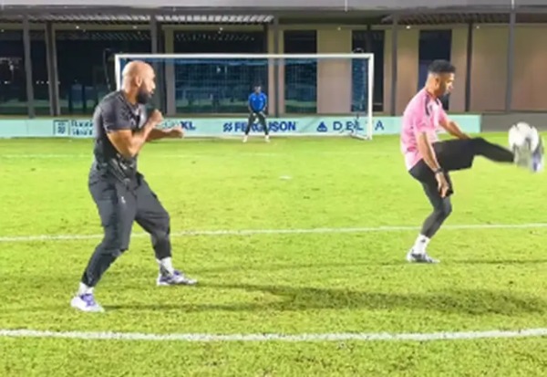 El guardaespaldas de Lionel Messi, Yassine Cheuko, asombró con una de las habilidades pocas vistas, con su golpeo de balón para marcar un golazo de volea.
