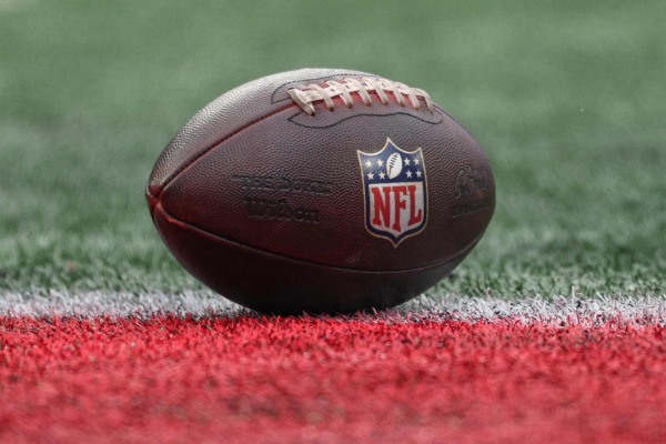 Balón de la NFL sobre el campo.