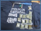 La primera detención fue sobre calle Isla Jónicas, en la colonia Simón Díaz, en donde los Policías Metropolitanos le realizaron una inspección de seguridad a Juan M., de 34 años de edad, localizándole entre sus pertenencias 14 bolsitas con una hierba verde y seca con las características físicas de la marihuana y 29 dosis de la droga conocida como cristal, además de un arma de fuego hechiza, sin cartuchos.