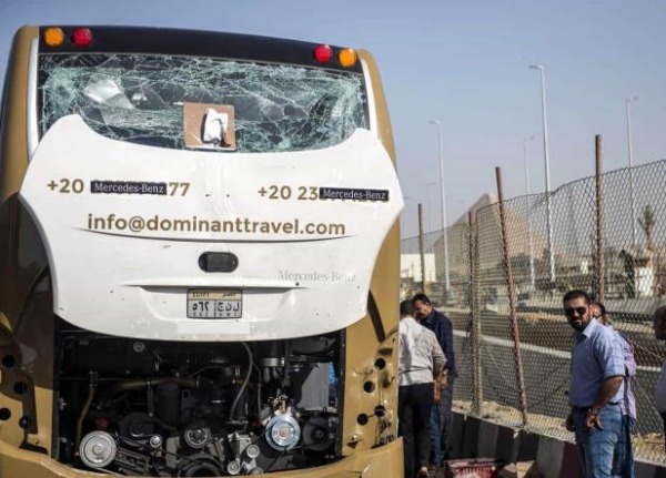 La televisión estatal indicó que el autobús llevaba a 25 turistas sudafricanos, algunos de los cuales resultaron heridos por la explosión de un artefacto "no identificado" que provocó que se rompieran los cristales del autobús y que dañó a un coche particular.