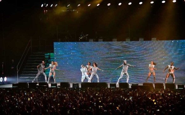 Luces de colores, fuego, humo, pirotecnia y pantallas gigantes que trasmitían videos dieron color al espectáculo; mientras que ellos lucieron múltiples vestuarios, y en cada tema estuvieron acompañados de bailarines.