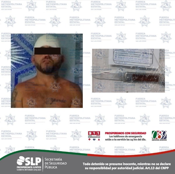 Al llegar al lugar de los hechos, la parte afectada hizo entrega de Victor R., de 36 años de edad, a quien señaló como el responsable de los daños a su propiedad y de entrar a su morada con un arma prohibida tipo navaja de muelle, solicitando del apoyo policiaco para proceder legalmente en su contra, motivo que derivó a su detención.
