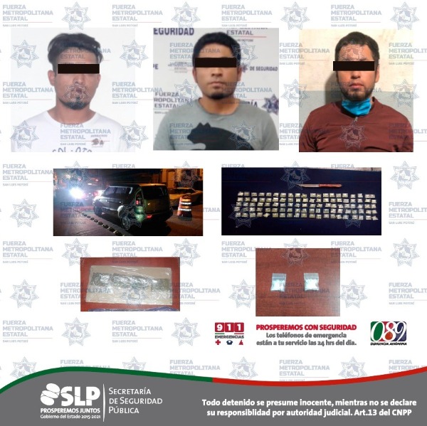 Derivado de los operativos de seguridad y vigilancia llevados a cabo en las cuatro regiones del estado, se realizó la detención de tres personas en la zona Metropolitana, en diferentes hechos, por el presunto delito de posesión de droga.