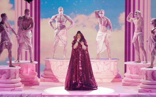 ?Entre estatuas de unicornios y escenarios acolchonado, la interprete estuvo acompañada exclusivamente de mujeres, entre músicos y casi una decena de bailarinas, quienes desempeñaron junto a la interprete de Bichoca, una coreografía muy similar a la utilizada en el videoclip que protagoniza junto a la rapera Nike Minaj. El video ya suma más de mil millones de visualizaciones, convertida así, en uno de los más vistos de la historia de Youtube.