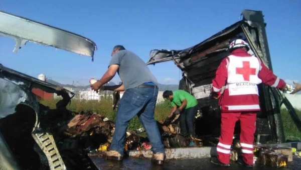 La unidad provenía de la zona del municipio de Tultepec y transportaba varias toneladas de alimentos envasados, como mayonesa y catsup, con dirección al estado de Puebla.