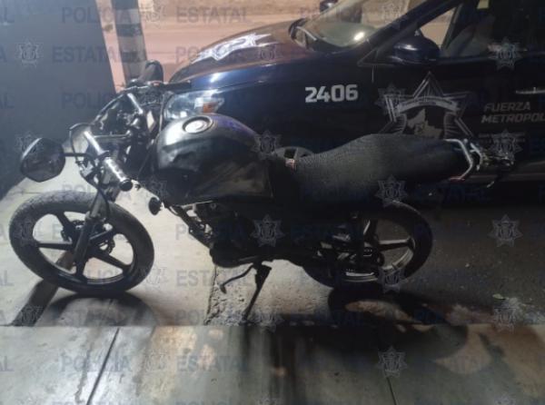 Los hechos ocurrieron en la calle de Girasol y Prolongación Moctezuma, donde los agentes Estatales detuvieron a José Z., de 33 años de edad, después de que se le aseguró una motocicleta marca Italika, color negro, sin placa de identificación, la cual presentaba alteraciones en los números de serie y motor.