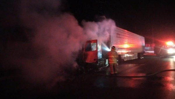 El conductor de un tráiler se encontraba descansando cuando de pronto comenzó a percibir humo, lo que provocó que se despertara rápidamente y pudiera salir a tiempo del vehículo antes de que fuera consumido por el fuego.