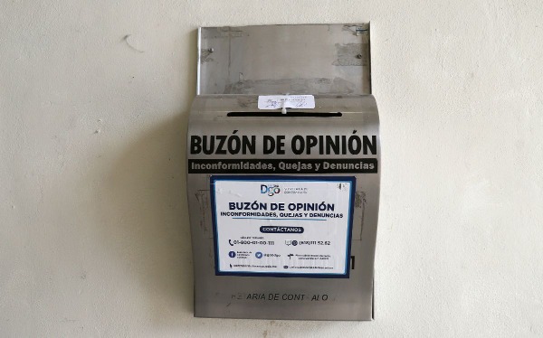 La dirección de Contraloría en la Región Lagunera de Durango, instaló más de 70 buzones distribuidos en instituciones educativas del nivel superior, así como en edificios públicos de 11 municipios a su cargo, con la finalidad de recepcionar las quejas ciudadanas contra funcionarios públicos.