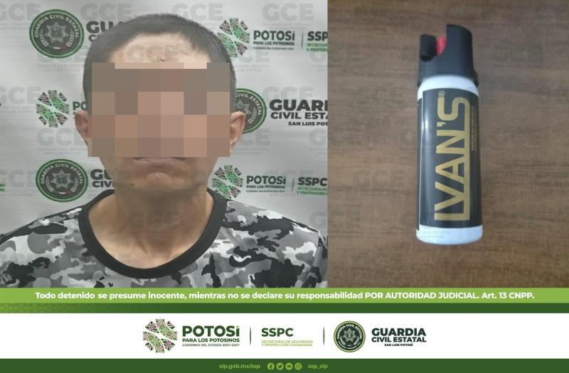 Durante los patrullajes en el Barrio de San Miguelito, a Oscar de 38 años de edad se le aseguró un gas lacrimógeno que llevaba en sus pertenencias. Por último, en la zona centro del municipio de Soledad de Graciano Sánchez, agentes de la GCE detuvieron a Francisco de 28 años tras el aseguramiento de un cuchillo de 22 centímetros.