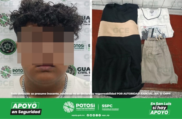 Elementos de la Guardia Civil Estatal (GCE) atendieron la denuncia del personal de un supermercado, en donde indicaban que una persona intentaba huir con varias prendas de ropa; gracias a la colaboración ciudadana y a la reacción de los agentes estatales, el presunto fue detenido con el producto del robo.