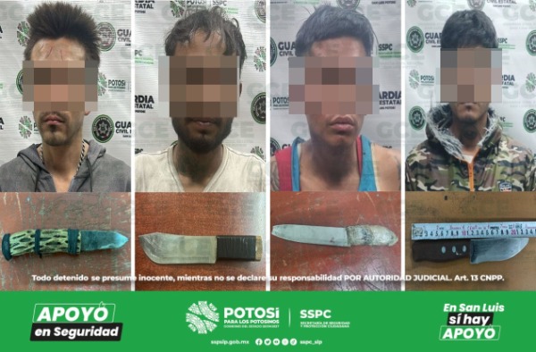 Otro de los sucesos fue en la colonia Jardines del Rosario, lugar en donde Jorge "N" de 22 años de edad fue detenido con un cuchillo; por último, en la colonia Villa Alborada, perteneciente al municipio de Soledad de Graciano Sánchez, José "N" de 25 años, fue detenido con un cuchillo de 23 centímetros.