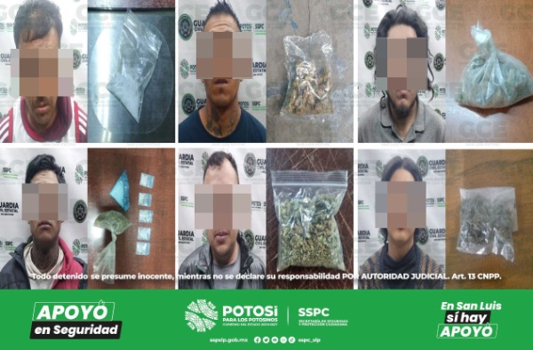 A su vez, en la colonia Ponciano Arriaga, Erick "N" de 21 años de edad, fue detenido con una dosis de marihuana; continuando con los patrullajes de seguridad, en la colonia Prados Segunda Sección, José "N" de 46 años quedó detenido al asegurarle una dosis de "cristal"; otro de los hechos fue en la colonia Industrial Mexicana, Francisco "N" de 27 años de edad, fue detenido con una dosis de marihuana.