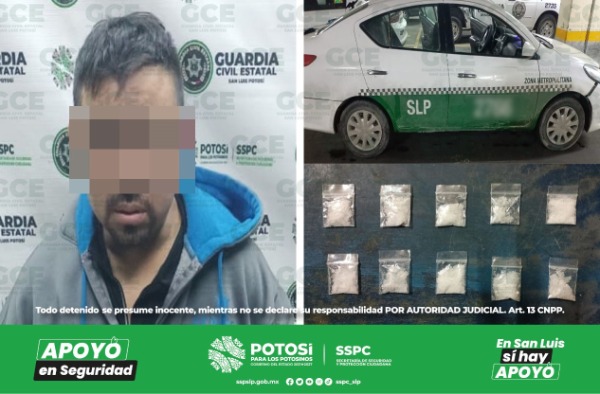 Como resultado de la reacción inmediata a situaciones que ponen en riesgo la paz de la ciudadanía potosina, agentes de la Guardia Civil Estatal (GCE) capturaron a un hombre, por los probables delitos de posesión de droga y conducir un vehículo que portaba placas sobrepuestas.