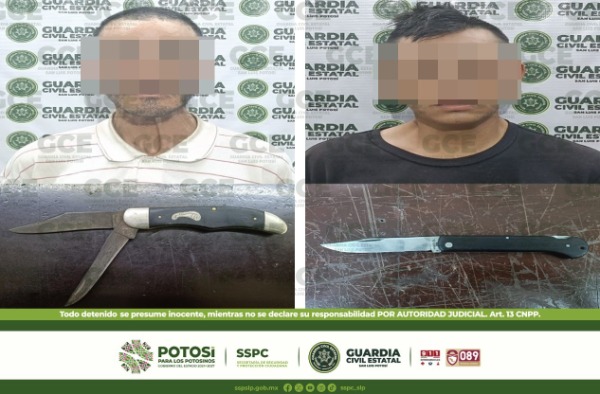 En la avenida Himno Nacional, de la colonia Jardines del Estadio, se detuvo a Adolfo "N" de 35 años de edad, quien llevaba consigo una navaja de 23 centímetros de longitud; en las calles de Alonso y Chicosein, del Barrio del Montecillo, se aseguró a José "N" de 21 años, luego de que se le encontrara entre sus pertenencias, un cuchillo.