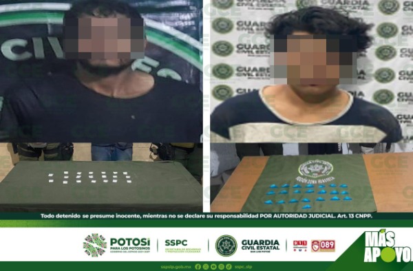 Operativos de seguridad e inteligencia desarrollado por agentes de la Guardia Civil Estatal (GCE), permitieron la captura de dos objetivos criminales, señalados de estar involucrados en la venta y distribución de narcóticos en la Entidad potosina, para diferentes grupos delincuenciales.