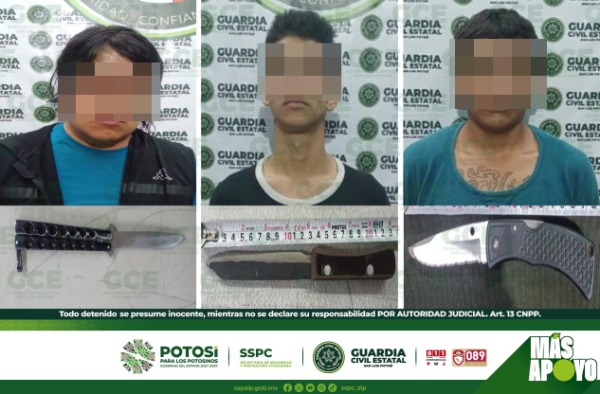 Uno de los hechos tuvo lugar en la colonia Burócrata, efectivos de la GCE detuvieron a Marco "N" de 31 años de edad, luego de asegurarle una navaja de 20 centímetros; a su vez, en la colonia General I. Martínez, Kevin "N" de 21 años, quedó detenido con un cuchillo, entre sus pertenencias. Por último, en la colonia Las Flores, José "N" de 23 años, fue descubierto con una navaja, lo que derivó a su detención.