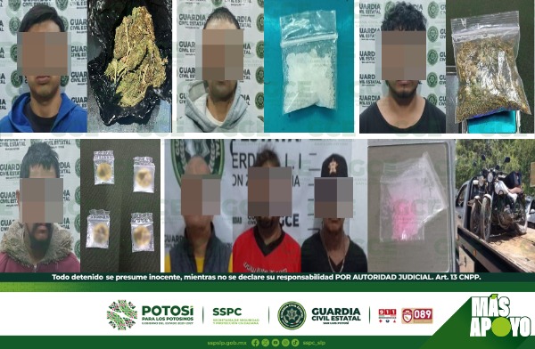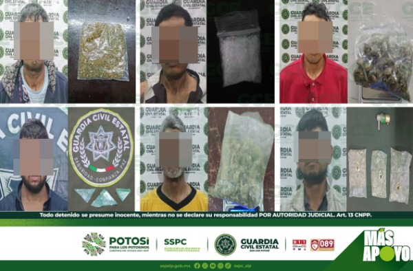 A su vez, dentro de los operativos en Soledad de Graciano Sánchez, en la colonia Villa de los Cactus, se detuvo a Erick "N" de 29 años de edad, con una dosis de marihuana; Israel "N" de 48 años, fue detenido en el fraccionamiento Misión de los Ángeles, con una dosis de marihuana y una bicicleta; en la zona centro del municipio de Villa de Arriaga, se detuvo a José "N" de 24 años, con cuatro dosis de "cristal".